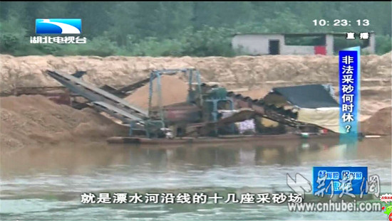 暗访短片中,随州市淅河镇老孙家湾村村民介绍,由于村内漂水河沿岸长期存在采砂行为,漂水河河床下降了两、三米,小溪水位升高。过河桥都沉降断开了。村里80%耕地在漂水河对岸,村民无法过河,很多耕地都被荒废。