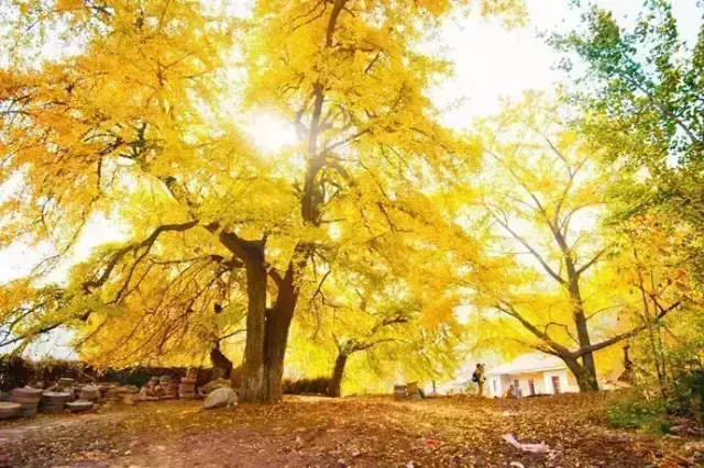 一阵风吹来,沙沙落下一片片扇形的金叶,散落在房顶、院落、柴草堆、山坡、田野……到处都象铺垫了一层厚厚的毯子。