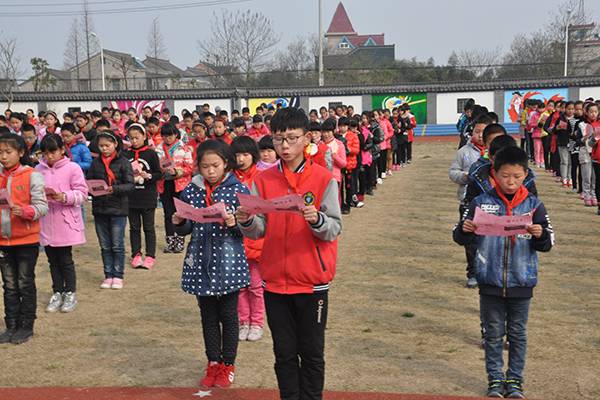 在拥有113年建校历史的海宁市盐官镇丰士小学大礼堂里,近千名师生齐聚一堂,一起诵读,场面十分壮观。原来,这天是丰士中心小学孔子学堂成立暨经典诵读启动仪式。随后,在学校大操场上,全体教师、学生和家长代表共同诵读孔子经典篇章《礼记·礼运》中的名篇——《礼运大同篇》。“大道之行也,天下为公,选贤与能,讲信修睦……”饱满情激昂的诵读声在美丽的校园上空久久回荡,表达了孩子们对传统文化的崇敬心情。