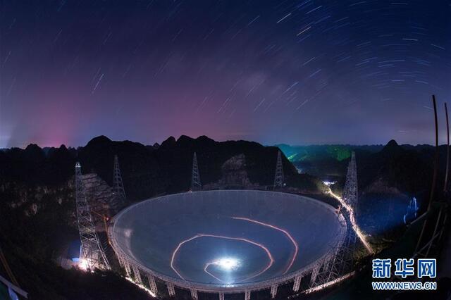 这是在贵州平塘拍摄的500米口径球面射电望远镜(FAST)(2016年6月27日摄)