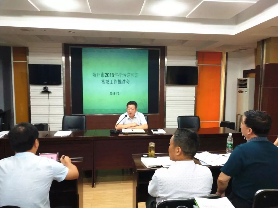 为全面落实排污许可制度, 切实做好我市2018年排污许可管理工作,全面完成2018年全市排污许可证核发、执行报告、执行台账上报等各项管理工作。2018年9月5日,随州市环境保护局组织召开了2018年度排污许可证核发工作推进及培训会,各地环保部门负责排污许可证核发工作人员及重点行业企业代表共计30余人参加会议。