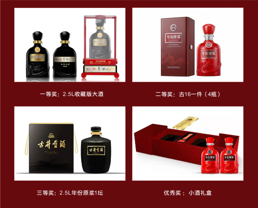 奖品:古井贡酒,价值5888元2.5L收藏版大酒1坛