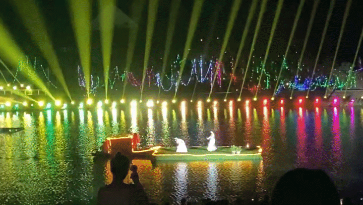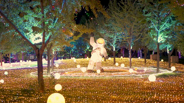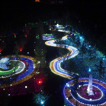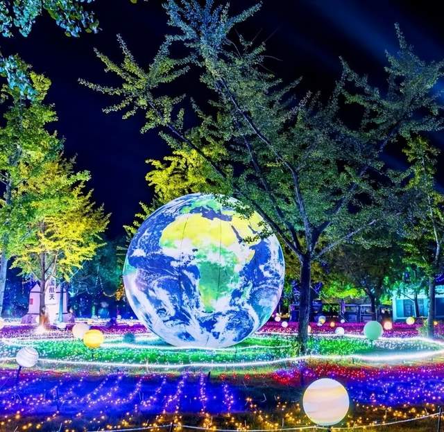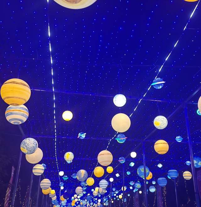 璀璨的海洋系列灯海,形似水母般,五彩斑斓,让人犹如置身海底世界,行星博物馆内,一盏盏球形灯光悬挂空中,熠熠生辉、繁星点点触手可及。激情四射的篝火晚会让这个夜色更加火热,手牵着手在繁星下,篝火旁,载歌载舞,抛开一切烦恼,释放所有压力。红的、绿的、黄的,远的、近的...仿佛穿梭于茫茫宇宙里,满目皆是浩渺星河,似梦似幻——这就是炎帝故里的夜色。