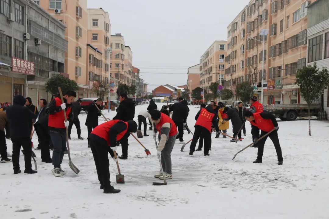 党员干部迅速投入到清雪和“破冰”作业中。大家不畏严寒,分工合作,手拿铲雪锹、铁镐等工具,奋力铲冰除雪、清扫路面,干劲十足,铲雪锹与地面摩擦的声音奏响了清脆的“战斗曲”,一抹抹“志愿红”让寒冷的空气变得暖意浓浓,大家用“小行动”保障“大民生”,为居民扫出一条“平安路”。