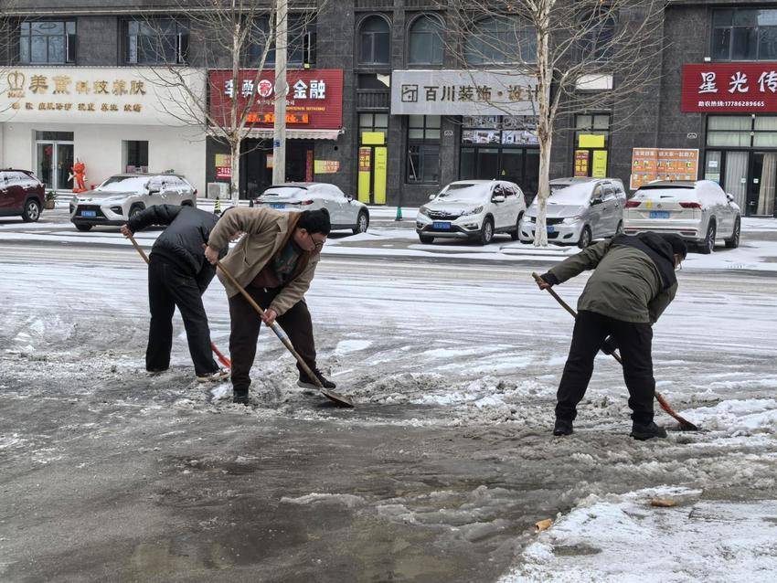 雪后清晨,社区工作人员便带着铁锹、雪铲、扫帚等工具集结完毕。社区负责人提前划定责任区域,明确分工重点,将主次干道、小区出入口、人行坡道及单元门前等易滑路段列为清扫核心,确保“雪停人动、人动雪净”。